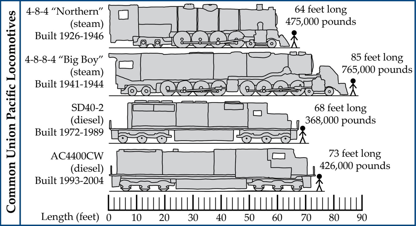 Trains that ran specific routes often had names. Famous Union Pacific trains include the Overland Limited, Portland Rose, and Challenger.
